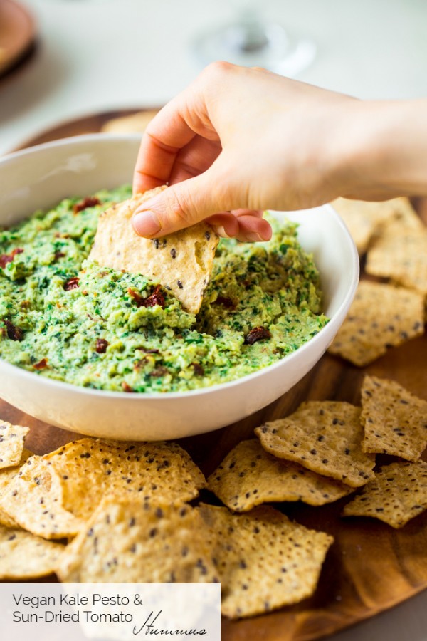 Homemade Hummus with Kale Pesto and Tomatoes {Gluten Free + Vegan} from Food, Faith, Fitness
