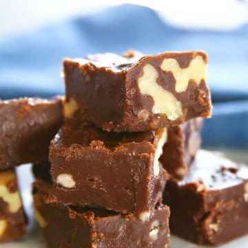 5-Minute Walnut Fudge is a classic holiday treat. Made in the microwave so you know it’s super easy. Perfect as a food gift for friends and neighbors.