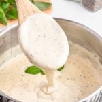Don’t walk away from this while it is cooking. If you stop stirring, it will thicken on the bottom and can burn. If the sauce is bubbling a lot, reduce the heat to medium-low. This saice should thicken quickly, so keep a close eye on it. If it is coating the back of the utensil, it is ready. If it easily drips off, you likely need to cook it longer. Add a small splash of milk to thin a sauce that has thickened too much. It will thicken as it cools. Adding cheese will also thicken the sauce quite a bit. Remove it from the heat a little earlier than you would if you are not adding the cheese. STORING