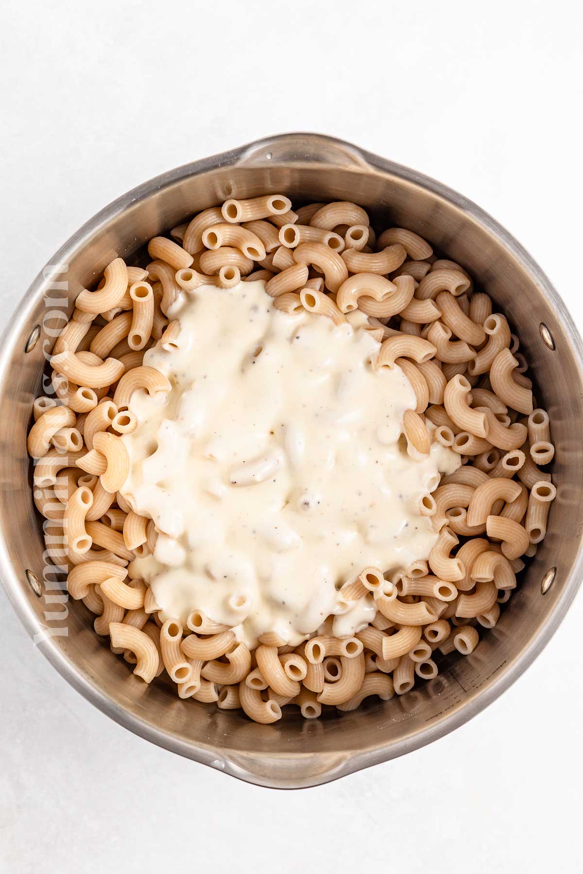 - Easy to customize. It can be creamy or cheese sauce – you can add some cheese and make an amazing, thick sauce.