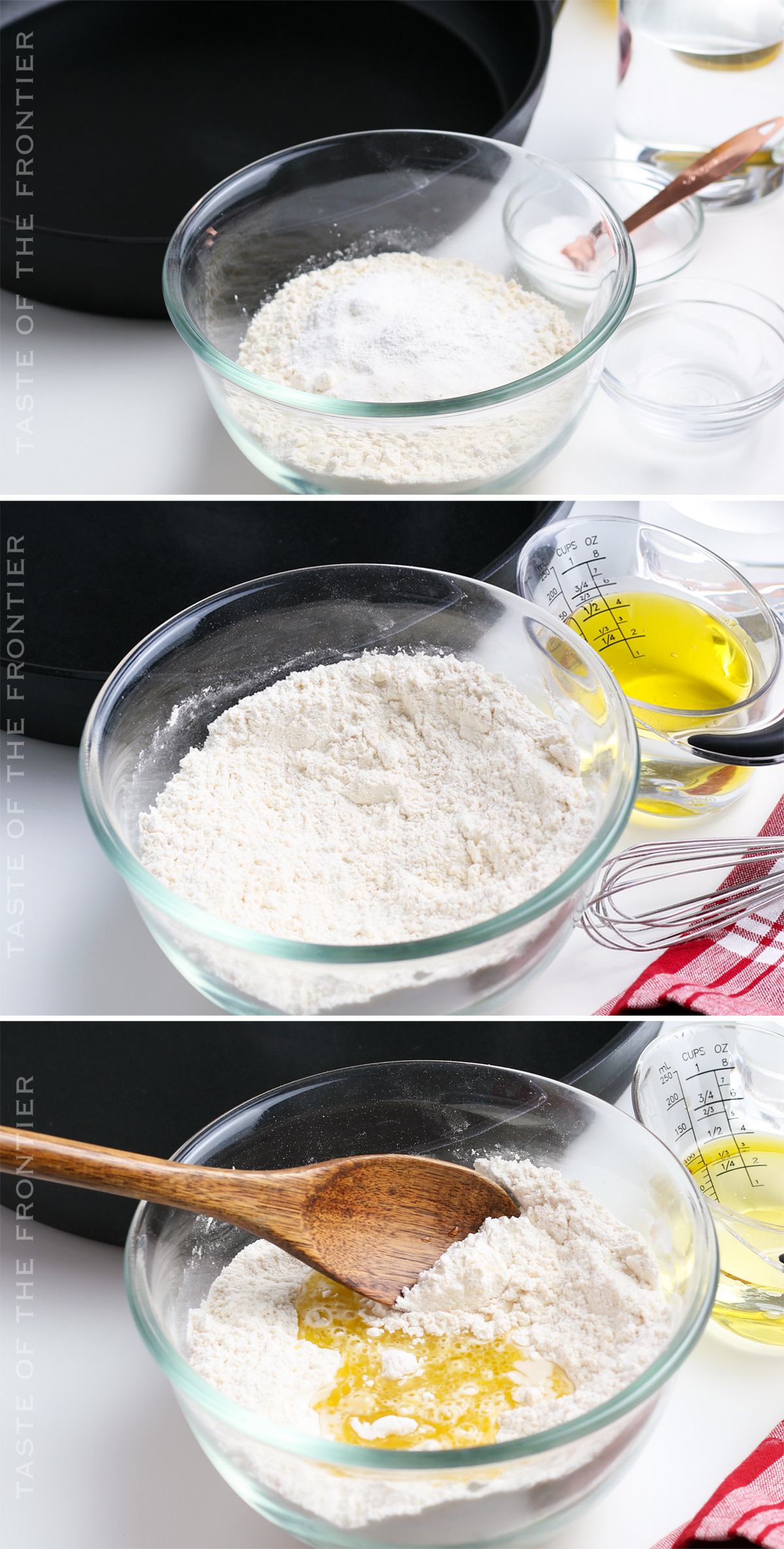 - If the dough seems dry and does not hold together in the shape of a round ball in your hand, simply add water to the dough. Start with 1/2 tablespoon till you can roll the ball without it being crumbly.