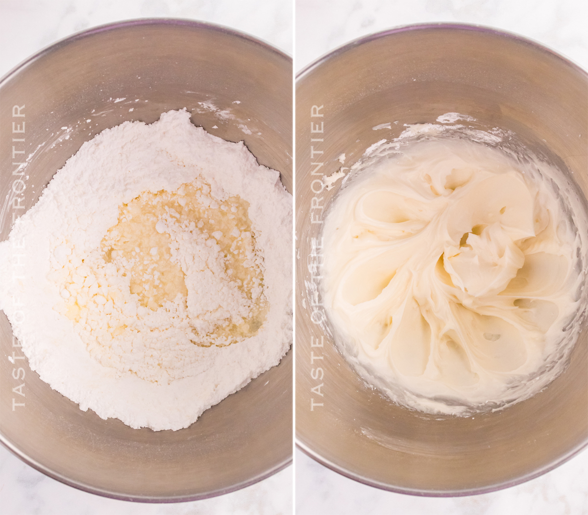 - In a medium mixing bowl, cream the butter and the 1/3 cup confectioner’s sugar with an electric hand or stand mixer. Beat for 2 minutes; Add vanilla and mix well.