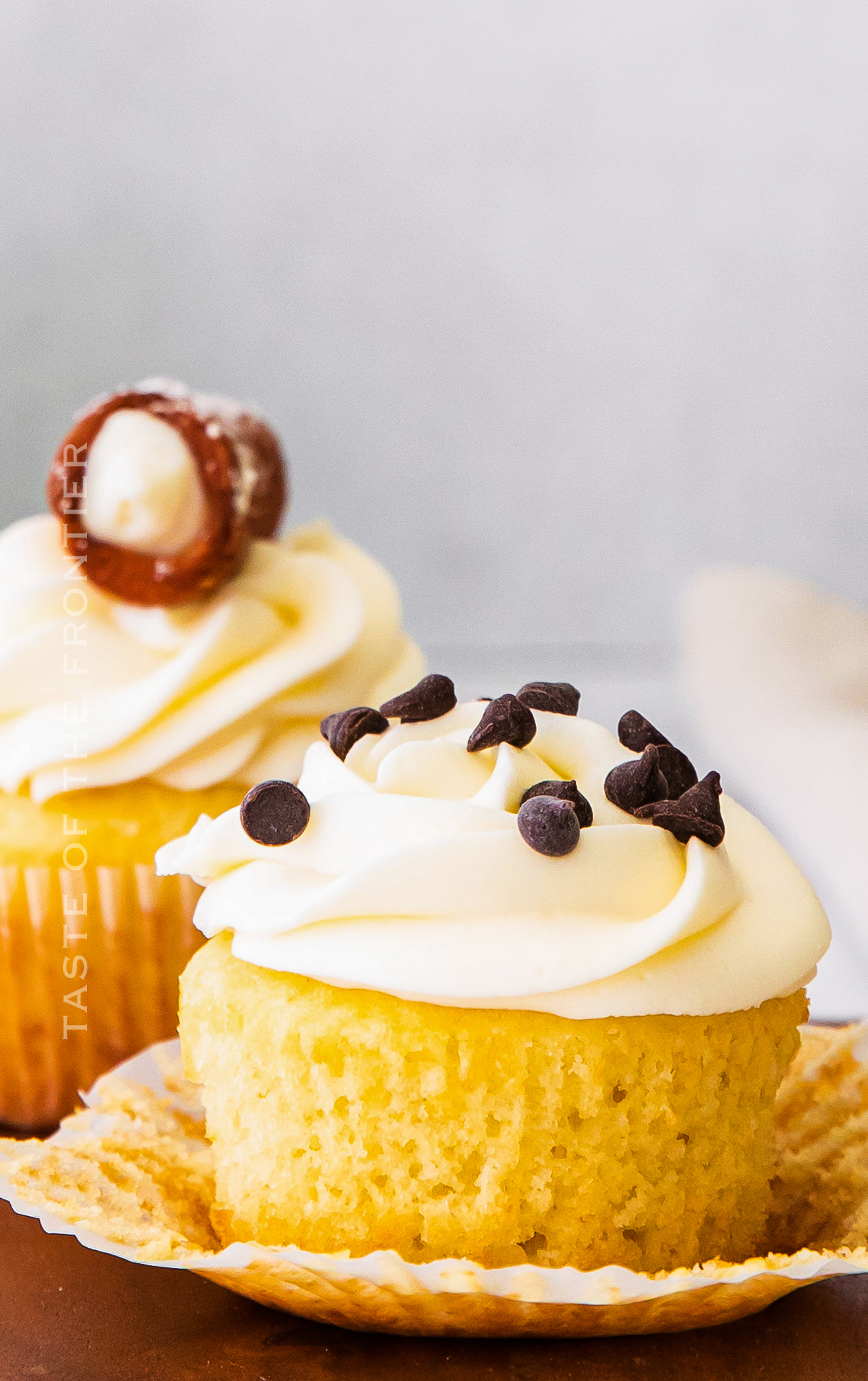 Basically, you whip up the cupcakes and you can make the cannoli filling while they bake. Then you can make the frosting while they cool. Each step is simple and takes very little time.