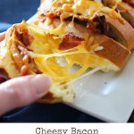 Cheesy Bacon Hasselback Bread is an easy game time appetizer recipe that the whole party will love. It’s the perfect snack for your tailgating party. YUM!