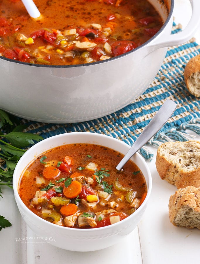 I love this chicken vegetable soup because I can make it 3 different ways, AND it gets me in and out of the kitchen in less than an hour. You just can’t beat that.
