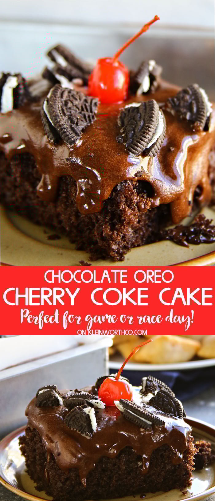 Chocolate Oreo Cherry Coke Cake is perfect for all your fall adventures like game day tailgating. This easy to make chocolate cake recipe is a crowd pleaser.