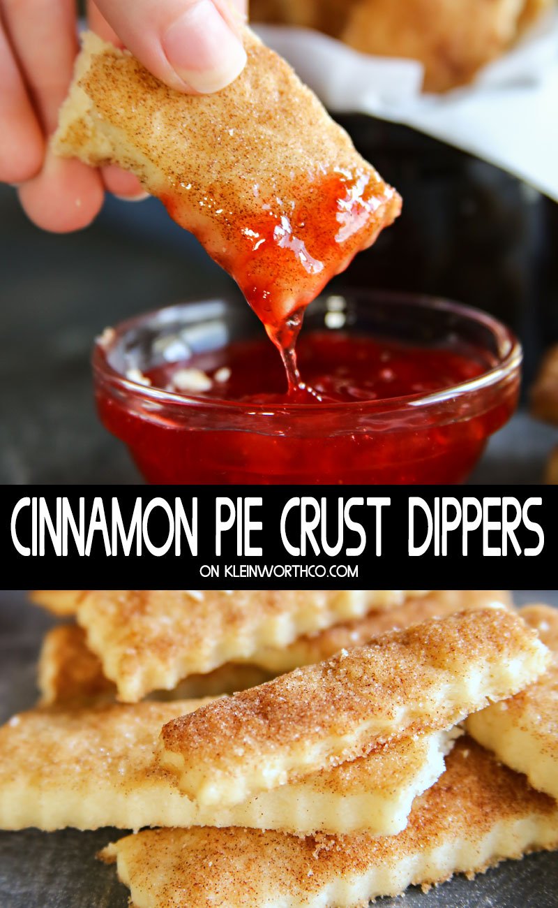Cinnamon Pie Crust Dippers are made with this food processor pie crust recipe that is so incredibly easy to make. Perfect for dipping in strawberry or chocolate sauce. YUM!