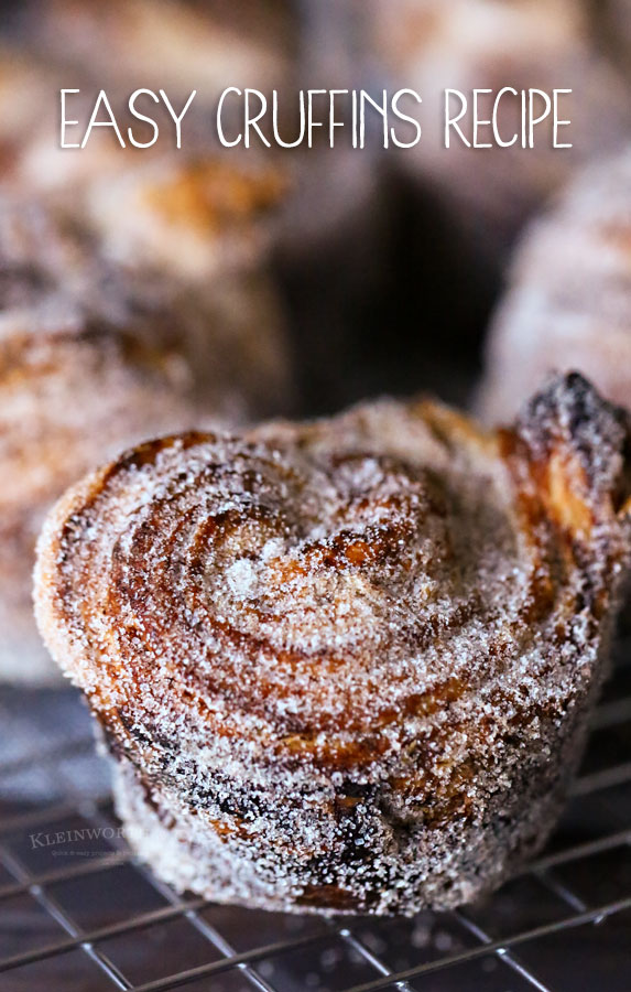 This Easy Cruffin Recipe is a cross between a croissant & a muffin. Made with puff pastry OR crescent roll dough & coated in cinnamon & sugar. Taste & texture similar to churros & positively heavenly. Great for breakfast, drizzled with dipping sauce, or topped with ice cream for dessert.