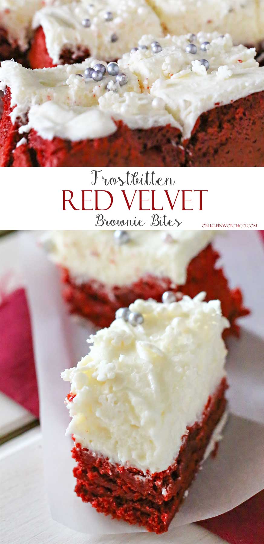 So you love red velvet? We sure do in this house. It seems every holiday season I just have to make some sort of red velvet recipe and these Frostbitten Red Velvet Brownie Bites are perfect.