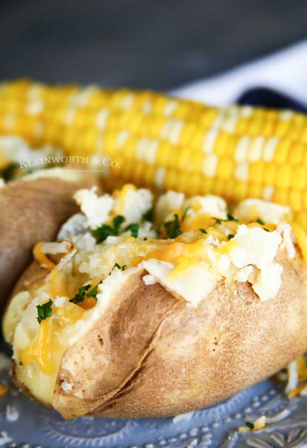 This baked potatoes recipe is so EASY and delicious – and you probably already have many of these items on hand! I have made a list below of the things I absolutely can’t live without when it comes to making this awesome dinner side dish.