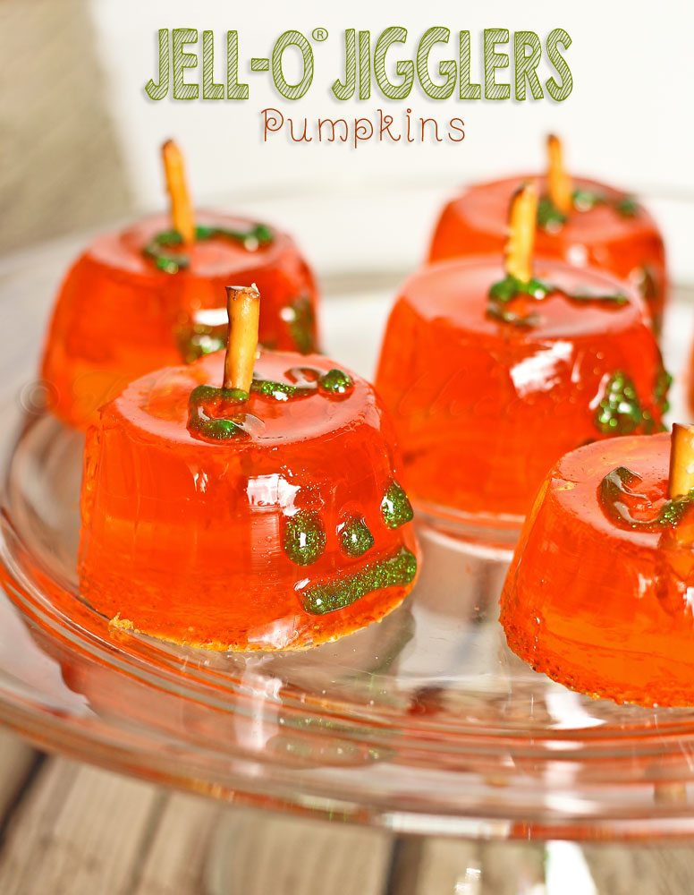 I then topped them with some Pumpkin shaped regular JELL-O® JIGGLERS I cut with a cookie cutter.