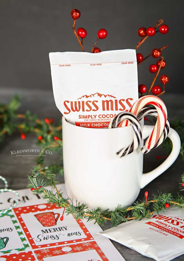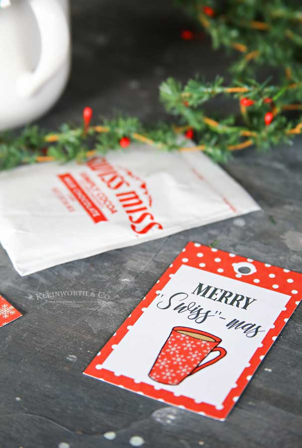Merry Swiss-Mas Free Printable Gift Tags to pair perfectly with a cup of cocoa Christmas gift. What an inexpensive and adorable way to give from the heart.