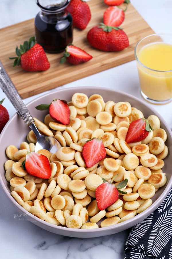 Mini Pancake Cereal has taken over the internet. Teeny tiny pillowy pancakes with a crispy outer texture are great with syrup, fruit, & more!
