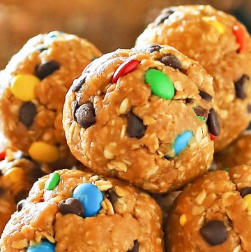 Monster Cookie Bites are an easy no-bake dessert that any M&M lover will ask for time & time again. Oats, peanut butter & honey make these a great snack!