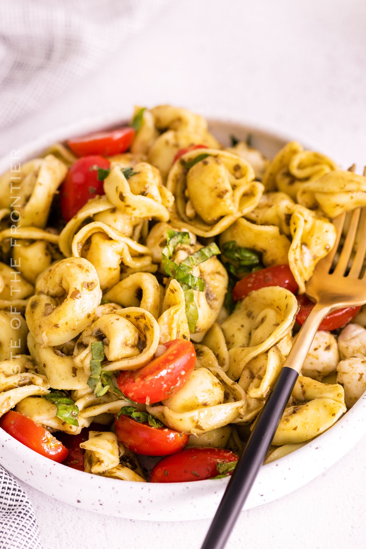 Though there are many different ways to make tortellini, this one is my favorite. I love how the pesto, tomatoes and cheese all come together in sweet simplicity.