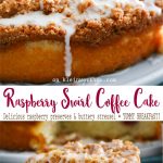 Are you making plans for Mother’s Day? Since my mother is no longer with me, we have a low key day around here where the kids like to bake for me & I try not to do things like work. It’s really great when the kids bake for me because they get to learn some things in the kitchen & I get to stay out of there for a change. I really love starting my weekend mornings with some sort of pastry or baked goodie. So I asked the kids to make me this Raspberry Swirl Coffee Cake. I have a thing for buttery streusel & sweet raspberry together & this coffee cake really hits the spot.