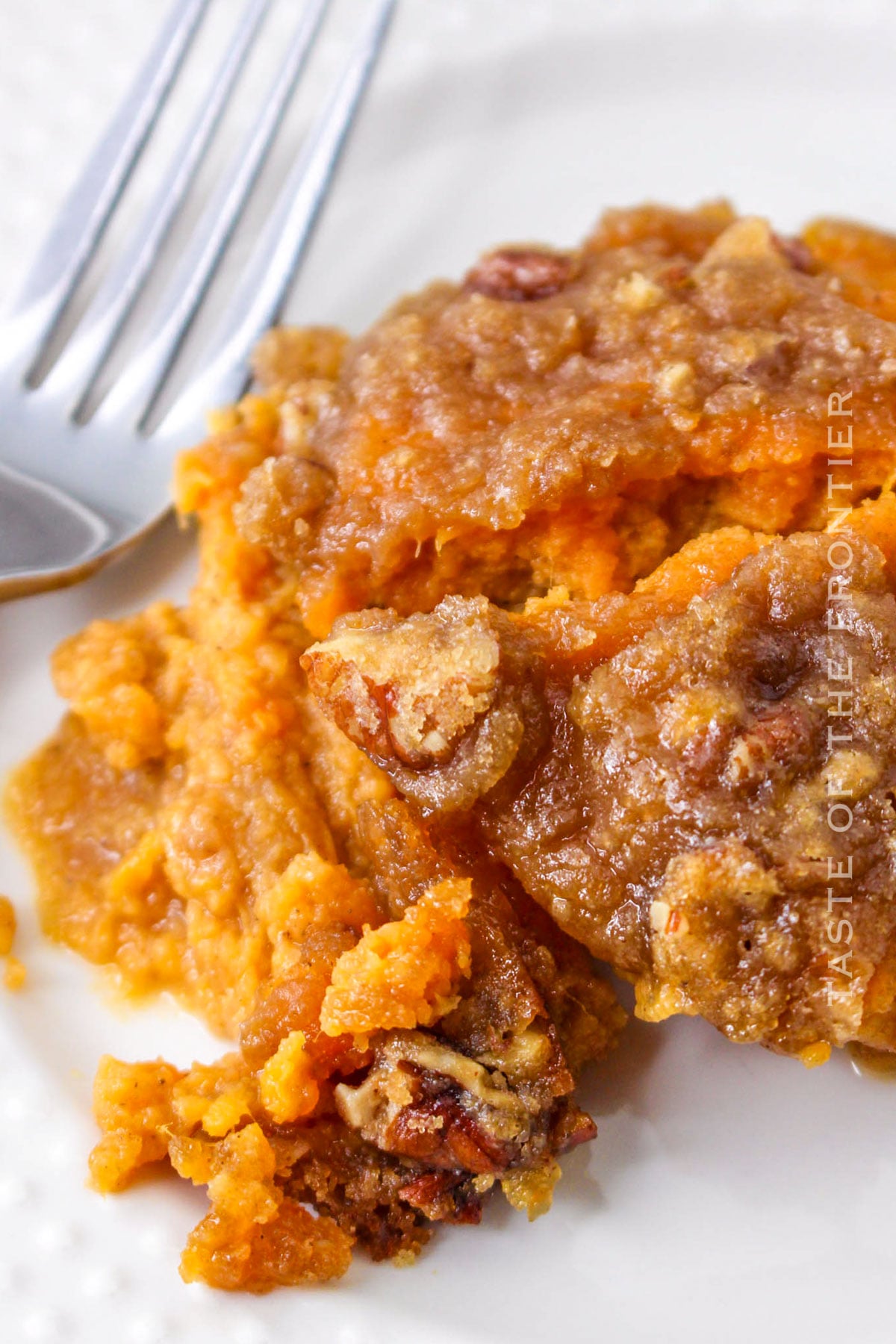 Oh, that sweet pecan topping! It does so much to this dish. I swear, it’s almost like a dessert. Sweet, buttery, and crunchy, this dish will pull hums of delight from everyone who digs in!
