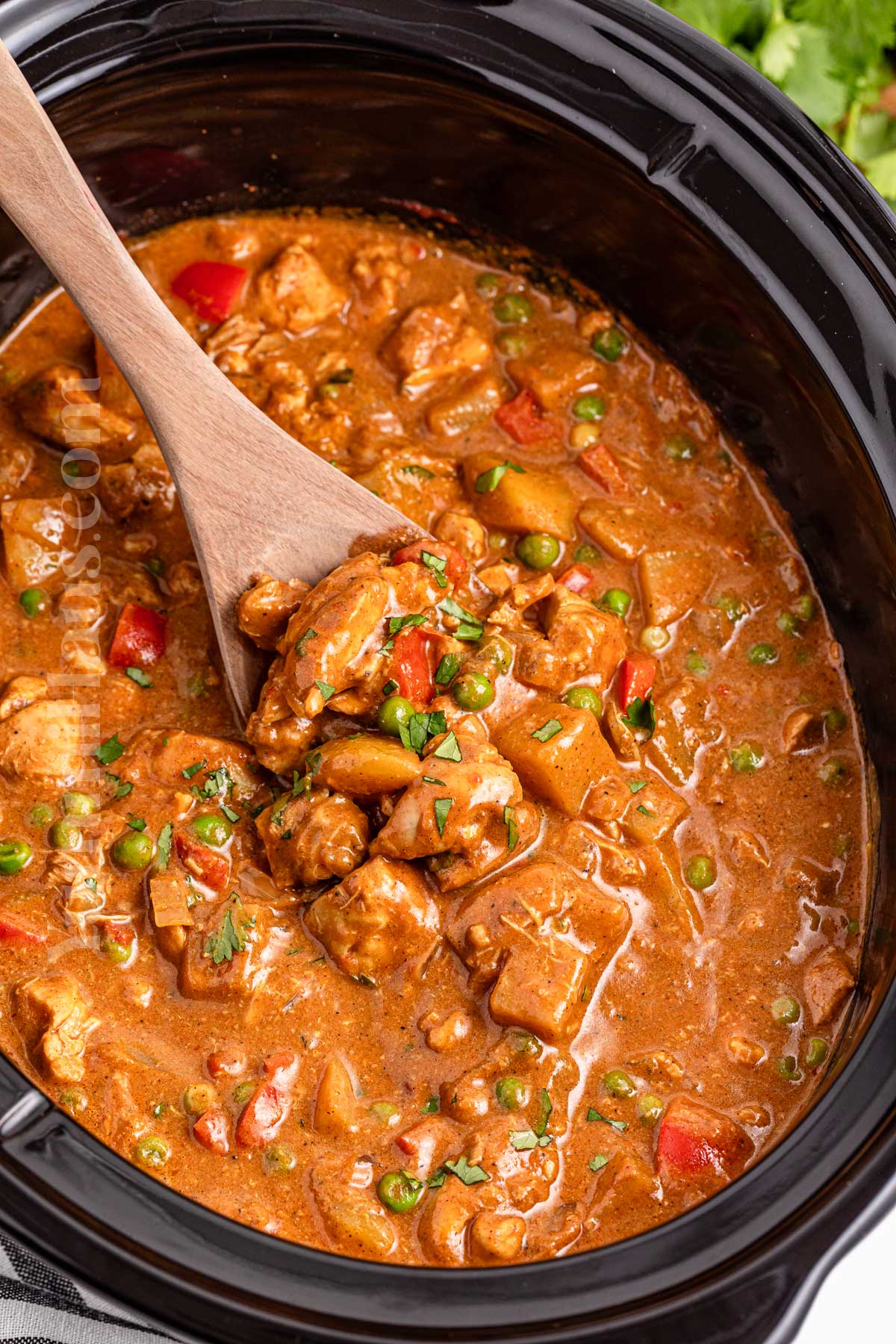 Chicken curry recipe always needs long cooking to make that signature thick flavorful sauce with an amazing flavor. A slow cooker is perfect for that and makes the process completely hands-off for us.