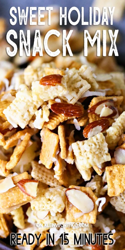 So it should be no surprise that recipes like this sweet snack mix are often served around here. We love it because not only does it satisfy the cravings for everyone – but it is crazy easy to make too.