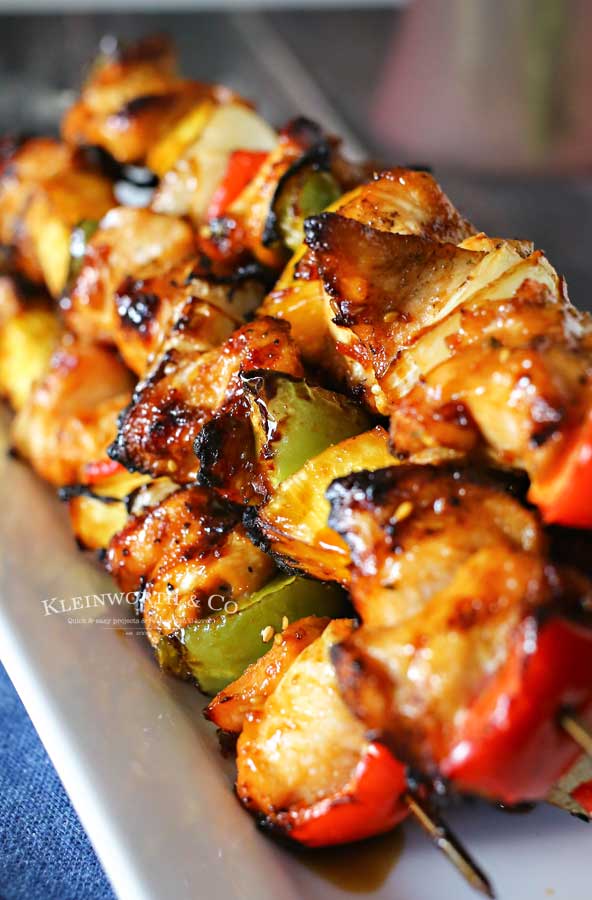 Not sure what it is, but something about grilled food on a stick makes it taste so much better. Whether you serve them by themselves or alongside rice or beans, they’re a perfect combination of tender marinated chicken with fruits & veggies.