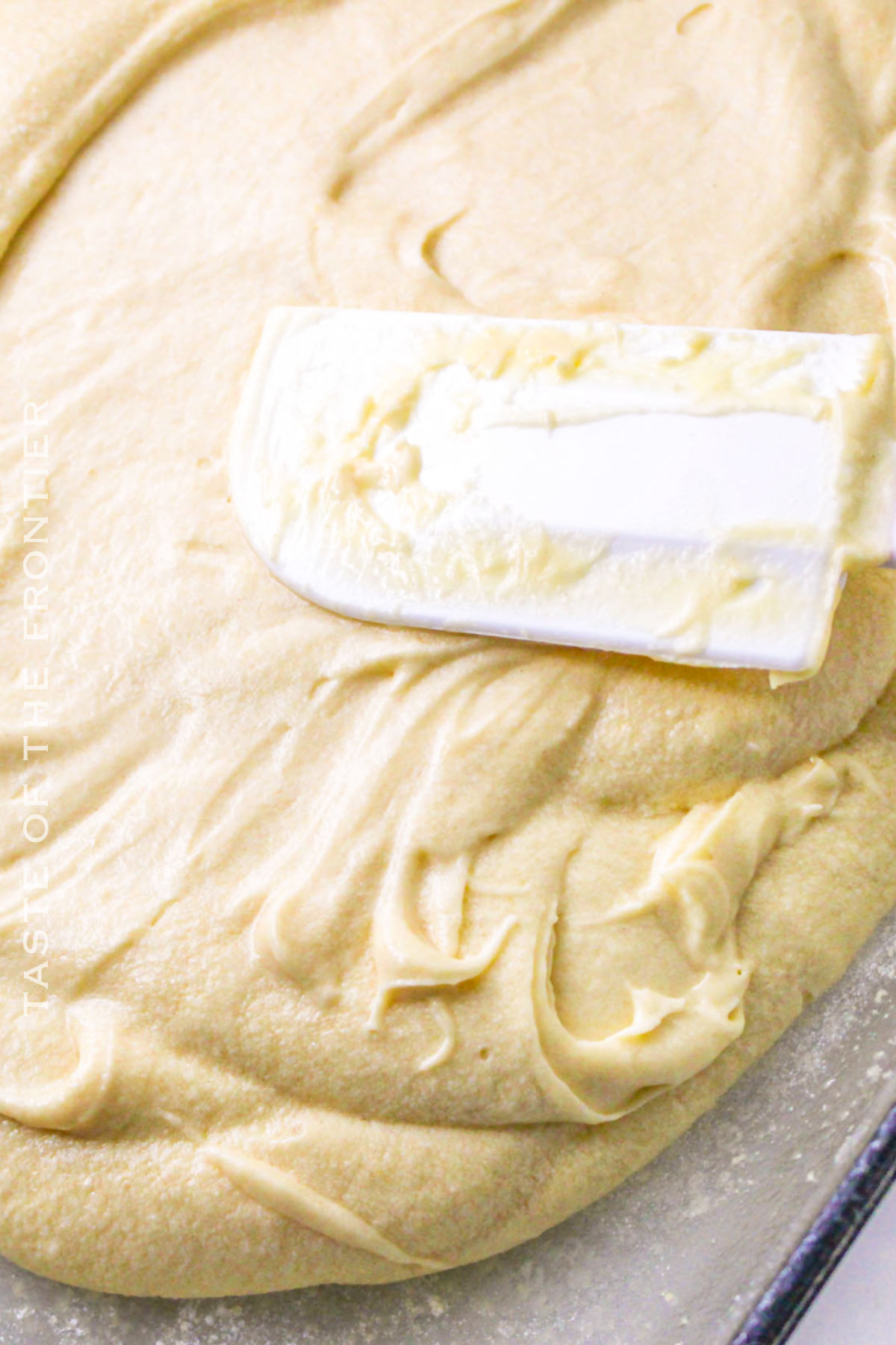 - Transfer the batter to the prepared baking pan and smooth the top evenly.