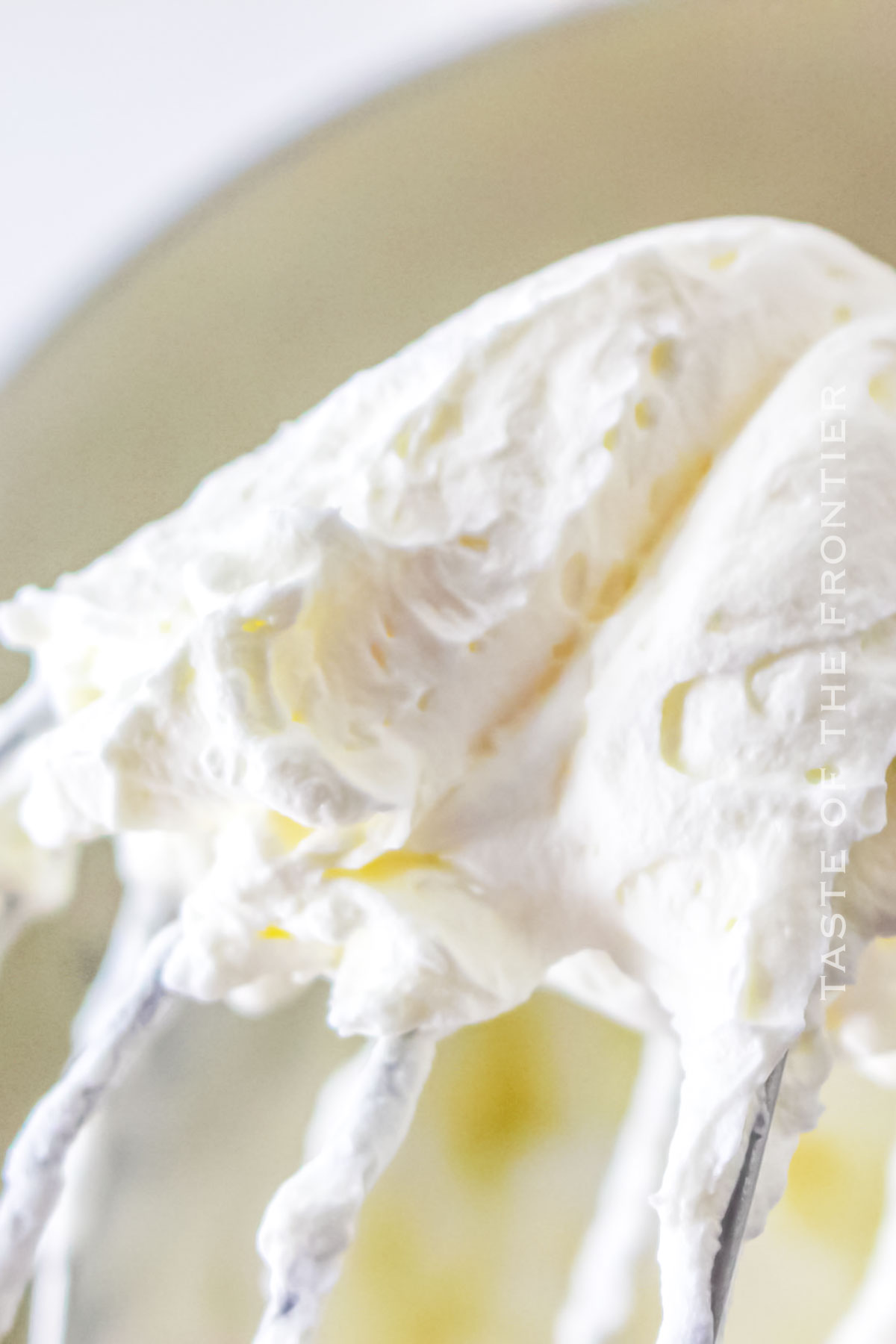 - When ready to frost, whip the heavy cream in a stand mixer with the whip attachment along with the remaining vanilla.